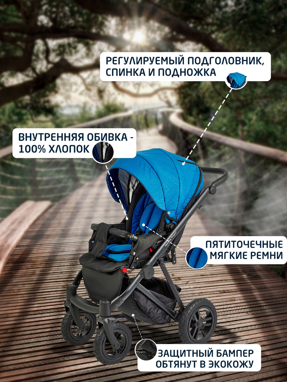 - вездеходные надувные резиновые колеса с системой амортизации «AntiShock», что делает ход максимально мягким и плавным, исключая тряску на неровной дороге
