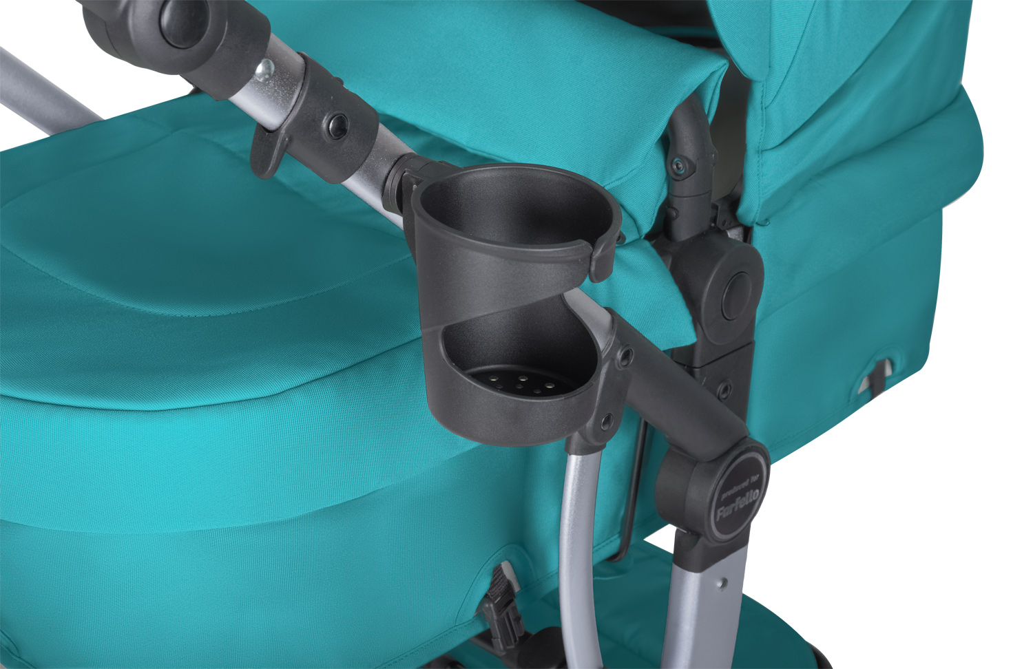 Коляска комплектуется удобным подстаканником, большим многофункциональным флисовым конвертом для ребенка, дождевиком и сумкой органайзером.