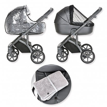 ROAN Коляска 2 в1 Bass Next короб + прогулка Titanium/Black/руч.Черный(2 места)