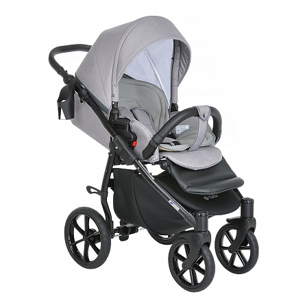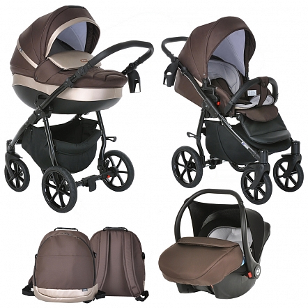 TUTIS Коляска 3 в1 NANNI люлька-пер+ короб+прогулка Серый+Кожа Тем.Серый/Чер рама/Гель.колеса