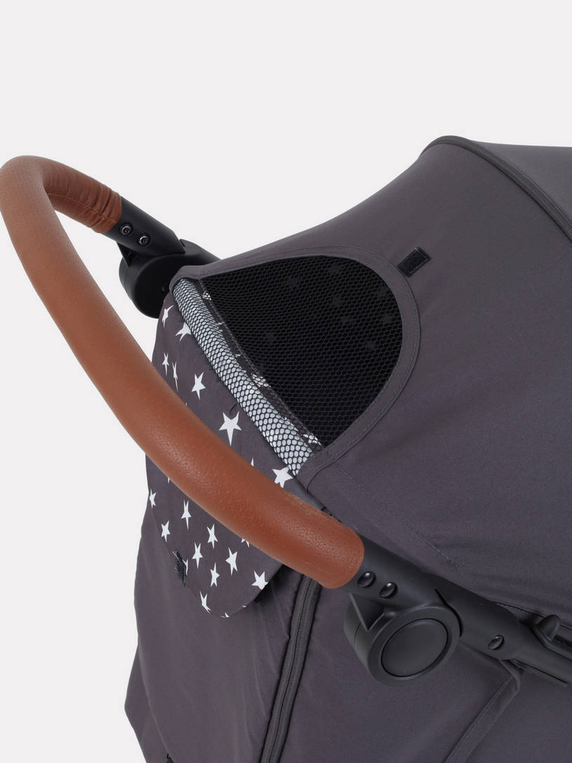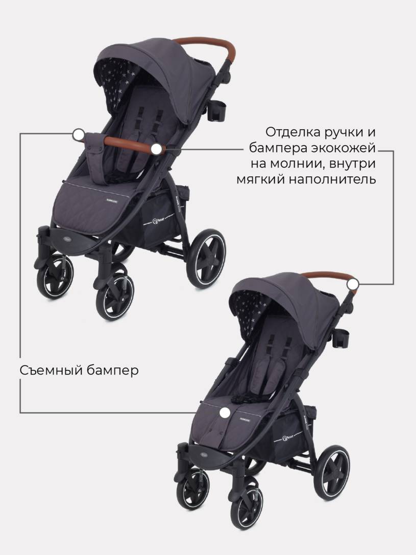 • ручка коляски и бампер отделаны практичной и эффектной перфорированной экокожей. Кроме того, и ручка, и бампер дополнены мягким наполнителем - вам и малышу будет невероятно комфортно