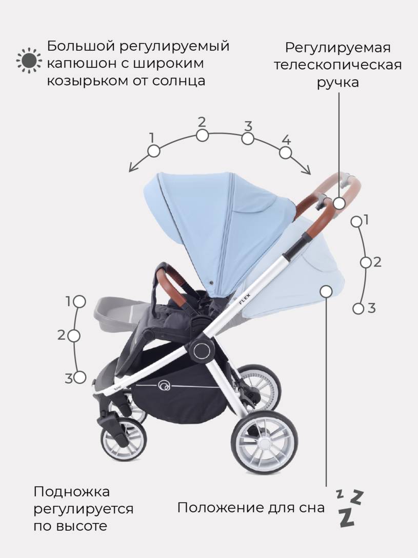 Коляска прогулочная Rant Flex 2022 Всесезонная, лаконичная модель, превосходящая своим функционалом европейские аналоги. Роскошная свежая деталь - серебряная рама - выдаст в вас тонкого ценителя прекрасного.