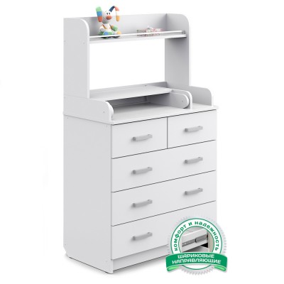 Удобный пеленальный комод с отделением для средств по уходу за малышом. Все необходимое будет всегда под рукой. Ящики комода оснащены шариковыми направляющими полного выдвижения, которые обладают плавностью хода и бесшумностью, а также увеличенным ресурсом пользования.
