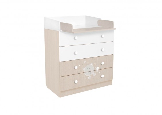 Комод имеет откидную пеленальную поверхность, которая снимается.