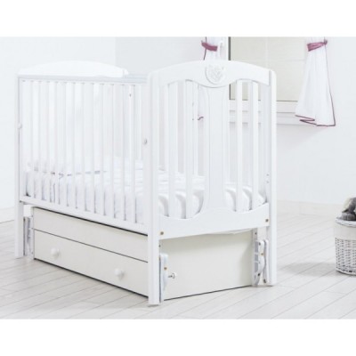 - Передняя стенка кроватки имеет способность опускаться, облегчая родителям контакт с младенцем.