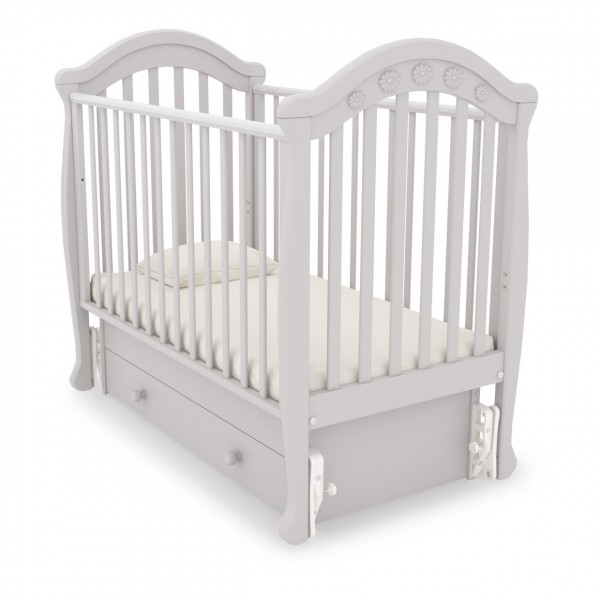 - Передняя стенка кроватки имеет способность опускаться, облегчая родителям контакт с младенцем.