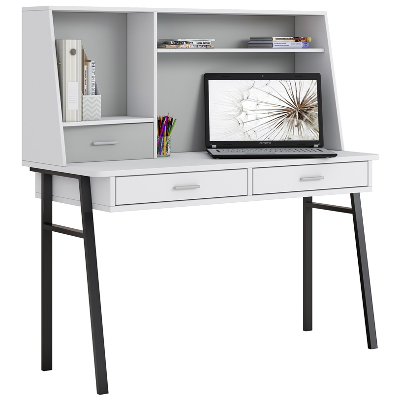 Стол письменный Polini kids Aviv 1455 с надстройкой и ящиками, белый / белый-серый