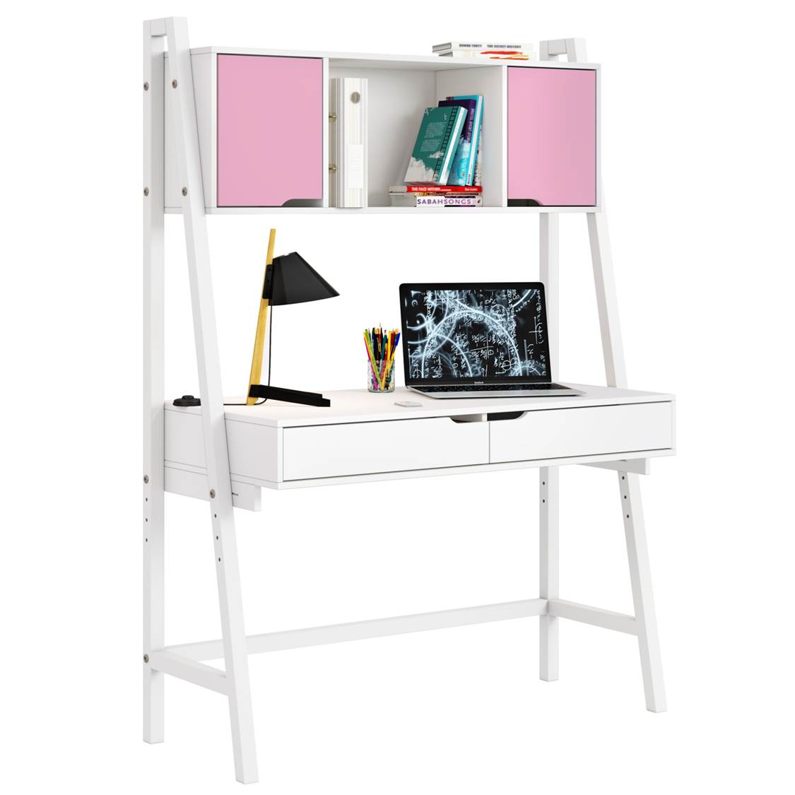 Стол письменный Polini kids Mirum 1446 высокий с полкой, белый/двери розовые