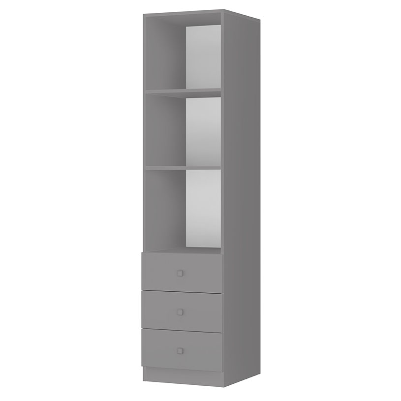 Стеллаж с ящиками Polini kids Simple, серый –многофункциональный стеллаж для детской комнаты с тремя открытыми полками и тремя вместительными ящиками на роликовых направляющих.
